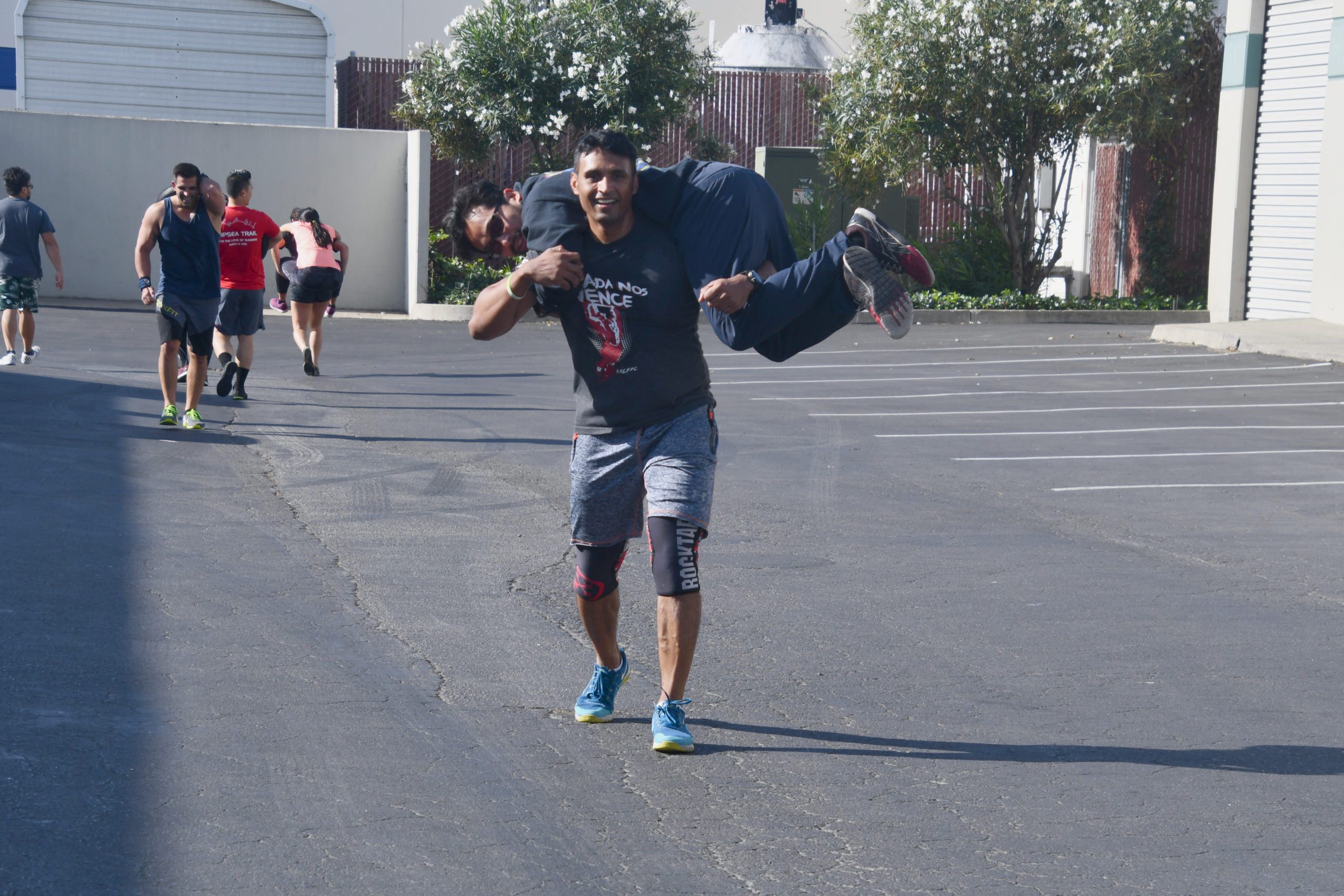 Core warm up: 3 rounds X hollow rocks X tuck crunches X v-ups X sec hollow hold 30 seconds rest x = 6 WOD: For Time In Teams of 2, complete 2 rounds of: 60 pull up 70 front squat 80 toes to bar 90 deadlift 100 wallball 20 synchro burpee btw each set